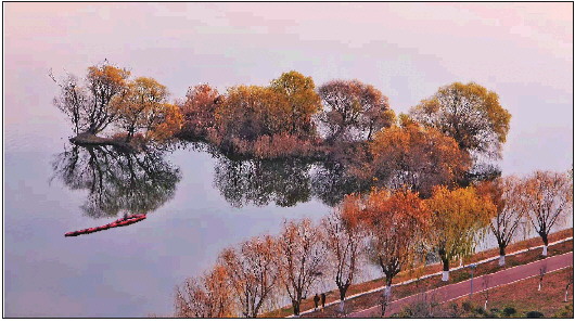 沂河边极目远望,一切尽收眼底。宽广的河面,河中小舟,如油画般徐徐打开,令人心旷神怡。冬日时节,河边的树木也变得萧条枯萎,树叶由青转黄,随风飘飘悠悠地落到河面上,装扮着这诗情画意的小河。