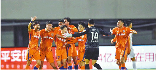 山东泰山2:1绝杀长春亚泰,下轮获胜即夺冠。 新华社发