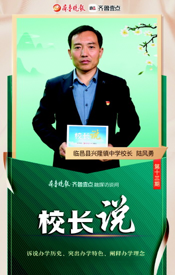 齐鲁晚报·齐鲁壹点大型融媒访谈栏目——《校长说》第十三期,临邑县兴隆镇中学校长陆风勇做客演播室。这所位于镇政府驻地的土马河沿岸学校,始建于1977年,是一所普通的全日制寄宿制乡镇初中。学校以规范精细管理,打造名优强校为办学目标,以育全面发展的学生,办人民满意的优质教育为办学宗旨,努力实现质朴真纯乡村学苑大气卓越育英港湾的发展愿景,全力打造优质乡村教育。