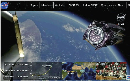 这张美国国家航空航天局提供的照片显示,韦布空间望远镜与火箭分离。 新华/美联