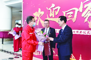 在中国驻蒙古国大使馆、驻伊朗大使馆、中国石化集团公司和胜利油田的多方协调努力下,东胜蒙古公司总经理、党支部副书记张虎贲带领22名同事踏上了回家的路。