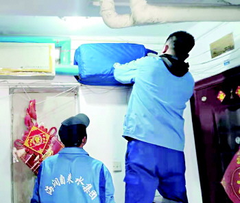 海润自来水工作人员给供水设备穿“保暖衣”。