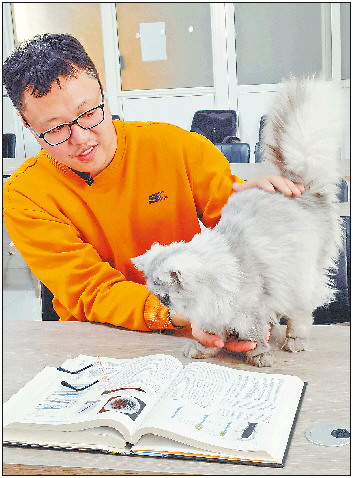 作为网红猫,“平安”早就红遍网络。在青农大生命科学学院的实验室里,它也因特殊身份成为“团宠”。不仅住的地方有文化,饮食也很有讲究。“怕平安生病,我们让它住在空气净化过的空调屋里,买来的都是最好的猫粮,给它喝矿泉水,平时会把煮好的鸡胸肉带来让它趁热吃。”赵明辉介绍,刚出生时“平安”处于正常猫体重的较低值75克,等到四个月大时体重就爆表了,现在七八斤重算是正常。