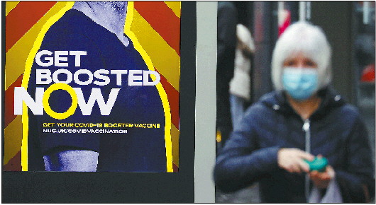 12月29日,一名女子经过英国利物浦街头一处鼓励人们接种新冠疫苗加强针的广告。 新华/路透