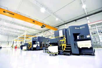 烟台冰轮智能机械科技有限公司副总经理田立海说,以我们的3D打印智能成型车间为例,车间配备了摄像头、智能操作端等集成在智控中心,可远程监控每个设备运行情况。整个工厂通过物联网技术的应用,完全实现了设备数控率100%,设备联网率100%。整个工厂只有20人,生产效率是同等规模传统铸造的5倍以上。
