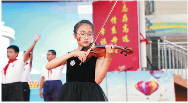 2021年7月,长清区实验小学学生表演小提琴演奏。