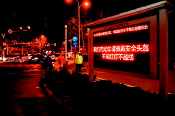 据张店交警大队六中队中队长郑建华介绍,在以往的日常道路管理工作中,经常看到有许多电动车违规逆行,存在极大的安全隐患。为此,淄博市交警部门工作人员在校园周边开展“一盔一带”安全劝导行动,向接送学生家长发放《致广大骑乘电动车人员一封信》1万余份,并在中心城区道路隔离护栏上安装文明宣传标语,在城区路口LED屏设置公益广告及文明交通标语,有效提升全市公民道路交通安全意识,营造浓厚创城氛围。