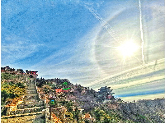 日出东方,其道大光。1月4日,泰山迎来壮美日出。上午岱顶天气晴朗,阳光在卷层云折射下出现了日晕奇观,太阳周边的云形成大大的“V”字,仿佛在说着“Yeah”!祝大家元气满满地开启新的一年! 齐鲁晚报·齐鲁壹点 记者 薛瑞 通讯员 刘佐仓 摄影报道