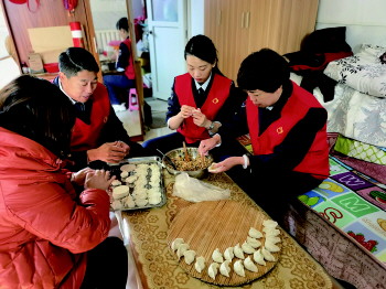 日前,青岛城运控股公交集团崂山巴士公司志愿者看望结对空巢老人,送去新鲜蔬果的同时,还包了饺子,陪伴空巢老人一起吃团圆饭。