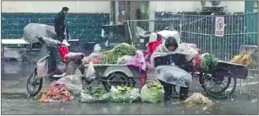 事情发生在2021年12月24日,在济宁市金乡县嘉欣农贸市场,正准备停车买菜的市民张静,无意中发现了一位冒雪出摊的老人。“老人身上披着塑料布,瑟缩着双手坐在路口,衣服上还落了不少雪花。”张静回忆。因为当天迎来寒潮又遇上大雪,路上行人寥寥,只有老人孤零零坐在那里,自己等了许久都没看见有人上前买菜。“挺让人心疼的,我想着尽自己绵薄之力帮一把,赶快卖完菜这样他就可以早点回家了。”