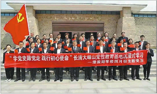 澄波湖学校党支部以“红心向党·澄波明德”为主题,以党群联动、双培双带、一岗双责为理念,以一轴四翼(以党支部为轴,以工会、共青团、妇委会、少先队为翼)、共建共享为工作思路,引领学校向黄河以北有影响力的济阳教育品牌,建设现代化一流教育强区努力奋进。