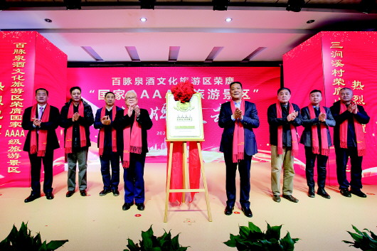 1月11日上午,百脉泉酒文化旅游区“国家AAAA级旅游景区”揭牌仪式在山东百脉泉酒业股份有限公司举行。山东省政协原副主席陈光,济南市文化和旅游局党组成员张明战为百脉泉酒文化旅游区“国家AAAA级旅游景区”揭牌。中国旅游协会副会长、山东省旅游行业协会会长、山东大学旅游产业研究院院长王德刚,章丘区人民政府副区长黄洪占为三涧溪村“山东省景区化村庄”揭牌。