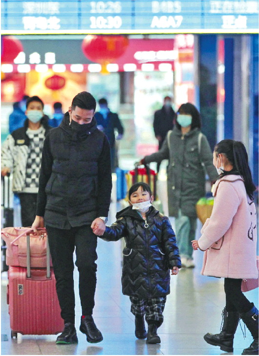 1月17日,2022春运大幕正式拉开,在外忙碌了一年的人们带着对家乡的思念,踏上返乡的旅程。当日上午10点,济南火车站客流平稳,旅客均佩戴口罩有序进站等候上车。回家的路上,形形色色的旅客有着不同的面孔和情绪,但他们期待回家的心情却是相同的。据了解,春运首日,山东多个主要城市旅客流量比较平稳,潍坊旅客量较前期略有回落,威海高铁站内甚至有点“冷清”。而根据相关数据,40天春运期间,全国预计发送旅客达到11.8亿人次。 齐鲁晚报·齐鲁壹点记者 王鑫 摄