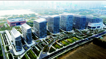 放眼太白湖新区,占地约17万平方米的新城发展大厦B座,是很多知名企业“安营扎寨”的写字楼,这座投用不过5年的年轻楼宇,仍给人以强烈视觉冲击。鲁泰控股、阳光颜料等新区大型企业都把公司总部设在了这里,目前大厦内入驻近600家企业,2021年实现税收超3亿元。