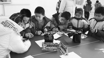 山东师范大学英才学校语文组备课组组长康惠告诉记者:“因为一年级同学写字比较少,所以我们以识字为主,设计了三关。”这三关分别为“小老虎爬山冈、小老虎诗文会、小老虎放寒假”。以“小老虎爬山冈”为例,一个山体形状的背景板上贴着5张虎爪形状的卡片,每张卡片上印有三个字词,对应不同颜色的抽签卡。来此闯关的学生需要念出与自己抽取卡纸颜色相同卡片上的字词。