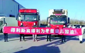 1月13日下午,一辆满载得利斯产品的大货车徐徐从宾得利公司开出,带着全体得利斯人对冬奥会成功举办和对奥运健儿的满满祝福驶向北京冬奥会奥运村。