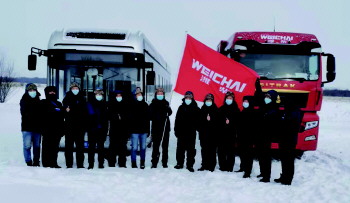 潍柴氢燃料整车试验工程师王侃侃介绍,寒区试验过程中,出现了一次燃料电池冷启动失败的情况。经过分析,发现是燃料电池发动机的排氢阀安装存在一定偏差,导致管道存水,使排氢阀冻住无法工作。技术团队对安装结构进行了改进,同时进一步优化燃料电池的吹扫策略,通过多次低温冷启动验证,最终解决了该技术问题,也对低温环境下燃料电池发动机的使用要求有了更深刻的理解。