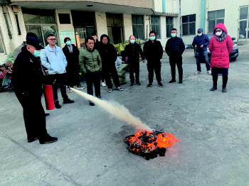 冬季火灾易发,为提高辖区居民和企业业主消防安全意识,增强应变、逃生技能,1月17日,乳山市城区街道龙山社区联合商业街派出所在丝针织厂院内举行安全消防演练。