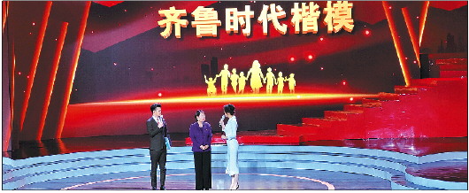 1月18日晚,“齐鲁时代楷模”——“大爱妈妈”杨守伟先进事迹发布仪式现场,杨守伟(中)几度哽咽落泪。 齐鲁晚报·齐鲁壹点记者 杜亚慧 摄
