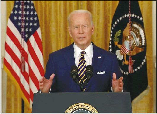 1月19日,拜登在白宫召开记者会(视频截图)。 新华社发