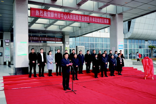1月8日,滕州市中心人民医院紧密型医共体妇幼院区正式揭牌,这标志着滕州市紧密型医共体建设工作迈出了坚实的一步。滕州市政府副市长张晓翠,滕州市卫生健康局局长孟祥磊、副局长李国庆出席揭牌仪式。滕州市中心人民医院、滕州市妇幼保健院党委班子全体成员和部分科室负责同志参加活动。滕州市中心人民医院、滕州市妇幼保健院党委书记邢佑文主持揭牌仪式。