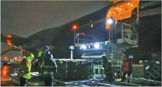 当地时间21日晚,美国援助乌克兰的一批约90吨军火运抵乌克兰首都基辅。