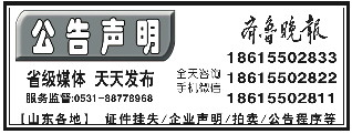 1月19日在齐鲁晚报A11版发布的《淄博市生态环境局履行义务催告及加处罚款告知书》(淄环罚催及加告字〔2021〕04003号)中,我局责令你单位在接到本催告书后30日更正为10个工作日内,特此说明!