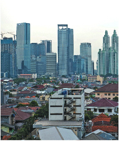 摩天大楼与低矮住房交错是印尼首都雅加达的典型面貌。 新华社发