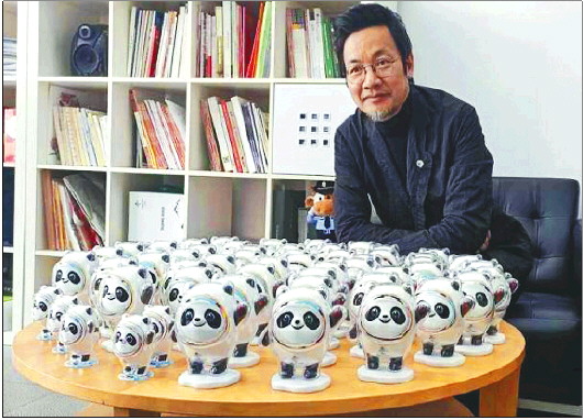 曹雪和他主持设计的“冰墩墩”。图片来源于网络