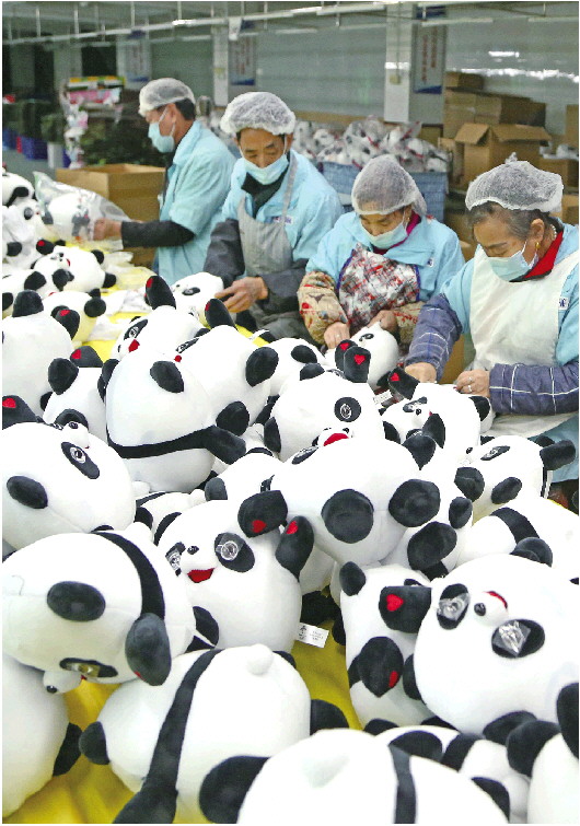 2月9日,在福建晋江一家玩具有限公司,工人赶制毛绒玩具版“冰墩墩”。冬奥吉祥物“冰墩墩”成新晋“顶流”,从大年初五开始,位于福建省泉州晋江市的一家特许生产商提前复工,调配工人和设备加紧生产,以满足各大渠道需求。 新华社发