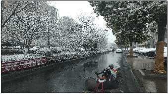 按照事先规划,他计划先到南京,再到上海,每天骑行100-150公里,晚上可以骑到县市或者镇上住宿,因为还是学生,为了省钱,也是住最便宜的小旅馆,“能洗澡就行。”皮卡丘说,出发之前,他没有做太多规划,因为计划赶不上变化,还是要随机应变,“比如江苏下雪的那天,2月7日,只能少骑一点。最重要的是出发前检查自行车状况,但路上还是扎了三次车胎。”