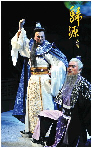 当然,意义不可单一化、概念化、绝对化,最好有留白,给观众留下思考的空间。这类戏剧最忌讳的是作者直接跳出来作“演后谈”,而高明的作者总是隐于人物和故事后面,因为他知道,形而上的意义应该是由血肉丰满的人物和生动有致的故事支撑的,应该是观众切身感受到的,是由剧情水到渠成引出的。应该说,《归·源》比较好地做到了这一点。