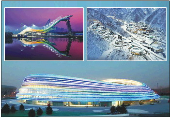 北京冬奥会场馆:首钢滑雪大跳台、国家雪车雪橇中心“雪游龙”、国家速滑馆“冰丝带”。 (资料图)