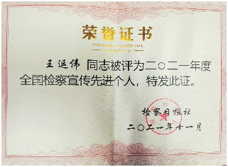 近期,长清区人民检察院办公室副主任王运伟同志被检察日报社评为2021年度全国检察宣传先进个人。