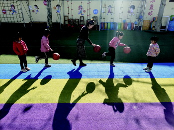 趣味篮球活动 日前,沂源县悦庄镇赵庄幼儿园开展了拍篮球活动,锻炼幼儿的肢体协调能力和跳跃能力。(郗目玲 陈守华)