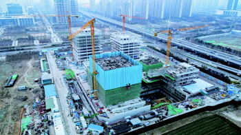 “整个项目实行全封闭管理,别说是外来访客,就连我们自己的工人都是严格进出管理的。”中建三局济宁金融中心项目副经理孙善光说。记者在施工区看到,工人们头戴安全帽,分散在不同作业面熟练地绑钢筋、砌筑墙面。人机相互配合,作业迅速有序,现场一派大干快上的景象。从远处眺望,三栋建筑鳞次栉比,繁忙的建设场景见证着济宁金融中心日新月异的变化。
