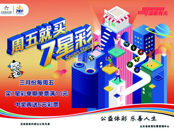 7星彩的“星期五购彩日”活动非常简单,在今年3月1日至3月31日期间的每周五(3月4日、3月11日、3月18日、3月25日)9:00-20:00,凡在我省体彩销售网点购买7星彩单期单票金额满10元的(多期票不参与),如该张彩票中奖,可获赠6元7星彩彩票。通俗来理解,就是三月份的每个周五,买7星彩单期单票满10元,如果中奖,再送6元彩票,这性价比,也是超级给力了!