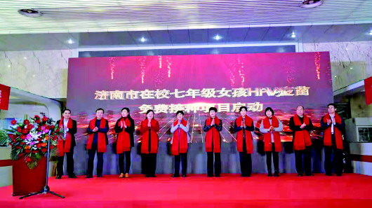 2021年9月17日,济南承办了全国健康中国行动创新模式宫颈癌综合防治试点工作启动会。11月9日,济南市在试点城市中率先启动七年级女孩国产二价HPV疫苗免费接种工作。截至2021年年底,济南市已为3.4万余名在校七年级女孩免费接种了国产二价HPV疫苗,在试点城市中率先实现了目标人群接种覆盖率大于90%的目标,对全国试点工作起到了示范和引领作用。
