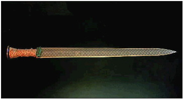 此外,古代刀剑钢材上的花纹就是因为钢质不匀导致颜色深浅不一形成的纹路。这种花纹钢类似于木头的三合板,不同的木纹叠加起来导致木材不容易顺着一个方向的木纹断裂。钢材层层叠叠的花纹也可以在一定程度上阻止刀剑断裂,有细小的裂纹也不会顺着变成大裂纹直接断裂。