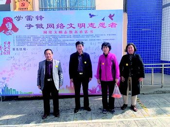 社区工作者和志愿者通过发放宣传页、倡导居民签名板上签字等方式向大家宣传文明上网的重要性和必要性,鼓励群众为精神文明创建奉献自己的一份力量。社区工作人员、党员和志愿者还向参与活动的居民群众分发“学雷锋”纪念胸章。