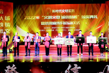 3月5日,“文明文登 诚信慈善”颁奖典礼暨信用宣传月启动仪式在文登区新时代文明实践中心音乐厅举行,张家产镇下冷家村的李永杰等1000名诚信之星喜获表彰奖励和千元诚信大礼包,威海博康特建材有限公司等200家信用建设示范单位和家家悦等8家诚信爱心贡献单位也获得现场表彰奖励。