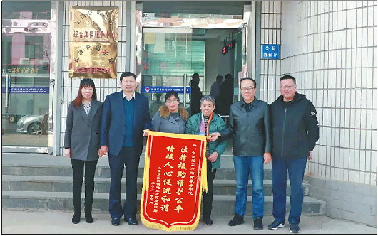 本报3月17日讯(通讯员 崔素) 近日,一位残疾老人专程赶到长清区公共法律服务中心,将一面书有“法律援助维护公平 情暖人心促进和谐”的锦旗送到工作人员手中,借此表达对长清区公共法律服务中心和法援律师的感激之情。区司法局党组书记、局长王新勇,党组成员、区公共法律服务中心主任孙力代表单位接受锦旗。