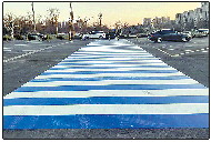 经常走开元大街的市民可能已经发现,这条道路的中医院门口、济北中学门口、济北公园门口、三发小区门口分别新添了绿白、红白、蓝白、黄白色相间的斑马线。这些斑马线不仅颜色醒目,同时还防滑耐用。