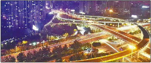 济南燕山立交桥夜晚灯光璀璨,给城市增色不少。(资料片)