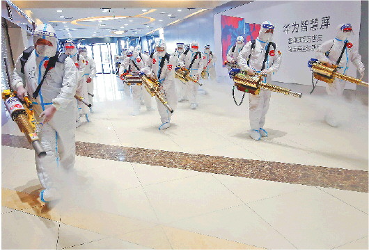 3月24日,为了尽快实现复工复产,保障顾客安全,潍坊泰华城进行“地毯式”消杀。自22日起,潍坊市党政机关、企事业单位、生产经营单位、各类重点项目,在明确“四方责任”、落实常态化防控措施前提下,有序恢复正常的工作秩序和生产建设。