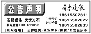 山东登报服务连锁机构:由省内多家广告传媒公司等主体组建而成的登报服务商及文化发展机构。基于转型发展需要。