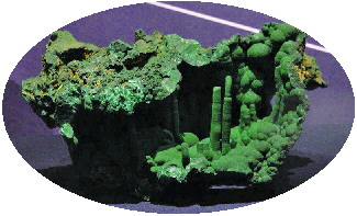 《春游晚归图》描绘了主仆四人春季郊外踏青游玩后高兴而归的情景。画面中山松苍翠、绿树夹岸,整幅画作用浓重的青绿色调,把林木舒发的生机之美表现得淋漓尽致。绿色是中国山水画中最重要的颜料,起初,绿色颜料由植物中提取,但颜色会随着时间推移而褪色,后来人们发现矿物中提炼的绿色更加鲜艳持久,于是孔雀石成了制作绿色颜料的主要原材料。