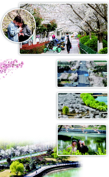 随春风飘舞的花朵,吸引路人驻足观赏、拍照。
