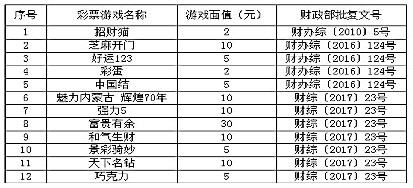 根据《彩票管理条例》《彩票管理条例实施细则》和《彩票发行销售管理办法》等有关规定及《财政部关于停止销售“彩蛋”等12款即开型体育彩票游戏的审批意见》(财综〔2022〕39号),“彩蛋”等12款即开型体育彩票游戏(见下表)自2022年6月1日0时起停止销售,2022年7月31日0时起停止兑奖。