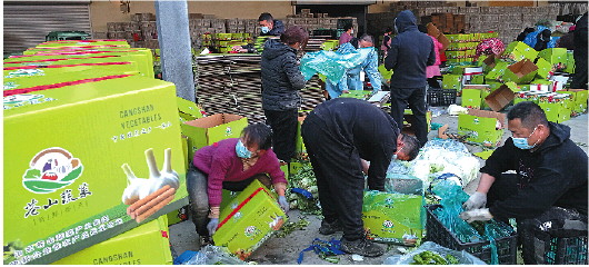 3月28日,接到上海市闵行区的采购需求后,兰陵县紧急组织各方力量进行蔬菜装配。